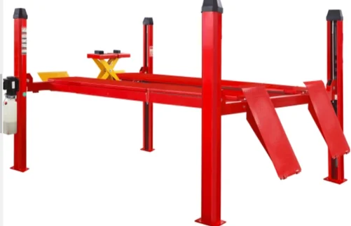 Four-Post Lift: The four-post lift contains four posts at each corner and a ramp-like platform connecting these posts that helps the vehicle to get on. Four-post lifts with different lifting capacities and base area dimensions are available in the market. Users can select the required lift by considering these specifications. The powerful locking system used will help to position the vehicle at the required height and prevent accidents. Also, the rectangular-shaped base platform will provide more stability to lifted vehicles. Commonly, four post lifts are used for wheel alignment services, oil changing, and repair services.