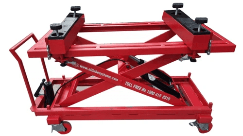 Product Description: Inbuilt Hydraulic Cylinders & Manual Foot Pump on Heavy Caster Wheels..... View more details